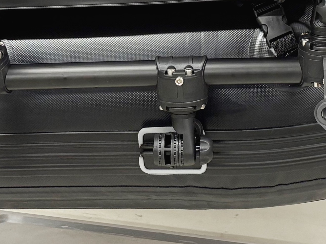 Met de stabilisator tegen de tube van de bellyboot geplaatst.
